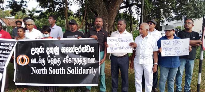 “දෙමළ ජන සංහාරය අමතක නොකරනු ! මරා දැමූ පුද්ගලයින්ට යුක්තිය ඉටු කරනු!” යන බැනරය යටතේ මීට වසර 42කට පෙර සිදු කරන ලද ඛේද ජනක සිදුවීම සිහිපත් කිරීමට ජනතාව රැස් වූහ.