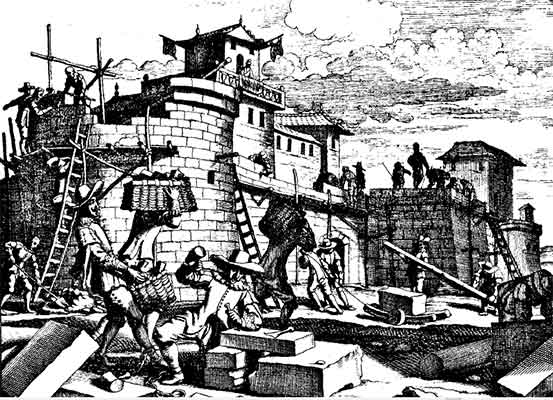 පෘතුගීසී සිරකරුවෝ සෙංකඩගල නුවර ගොඩනැගිලි තනති. (ඕලන්ද සිතුවමකි)